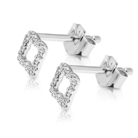Dodaj subtelnego blasku do swojej stylizacji dzięki tym eleganckim złotym kolczykom. Kolczyki te prezentują delikatny, ażurowy kształt przypominający koniczynkę, ozdobiony lśniącymi diamentami. Ich minimalistyczna forma w połączeniu z klasycznym sztyftem sprawia, że są idealnym dodatkiem zarówno na co dzień, jak i na specjalne okazje. Błyszczące wykończenie i staranne wykonanie dodają im wyjątkowego uroku.