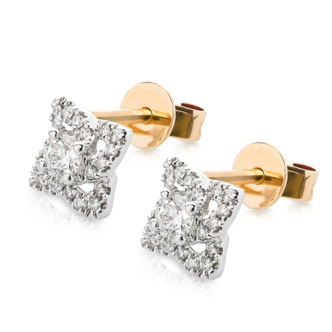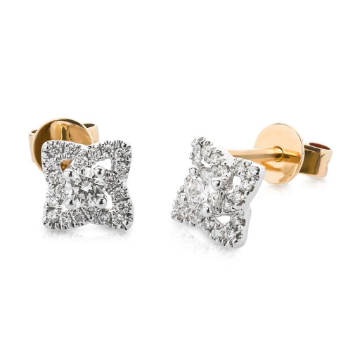 Złote kolczyki 585 w kształcie kwiatu z diamentami 0,29ct