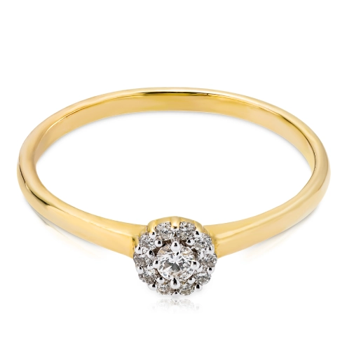 Złoty pierścionek 585 z diamentami w stylu kwiatowym 0,12ct