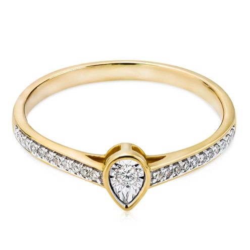 Złoty pierścionek 585 z diamentem w kształcie łezki 0,1ct