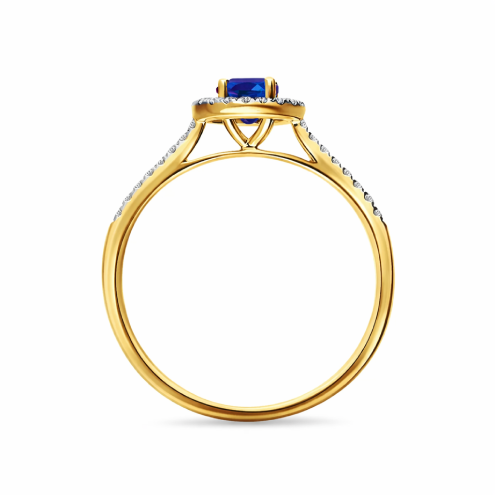 Złoty pierścionek 585 z szafirem 0,29ct i diamentami 0,14ct